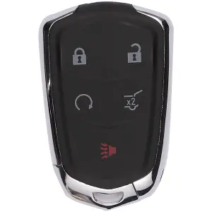 - Description: Autel programmable 5-button GM-, Cadillac-style IKEY. Lock, Unlock, Remote Start, Trunk, Panic. Use the Autel MaxiIM KM100 to program IKEY. Include GM-, Cadillac-type Rescue Blade. Meets or exceeds industry and regulatory standards. Compatible with vehicle systems using 315/415 MHz and 868/915 MHz. Capable of Ultra-Long Range (40 meters/130 feet) frequency transmission. Battery (CR2032) and Emergency Blade not included. One-year limited warranty.
